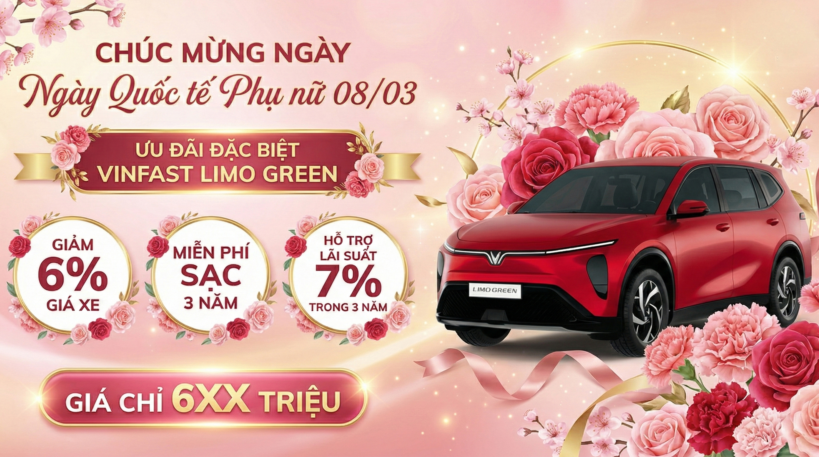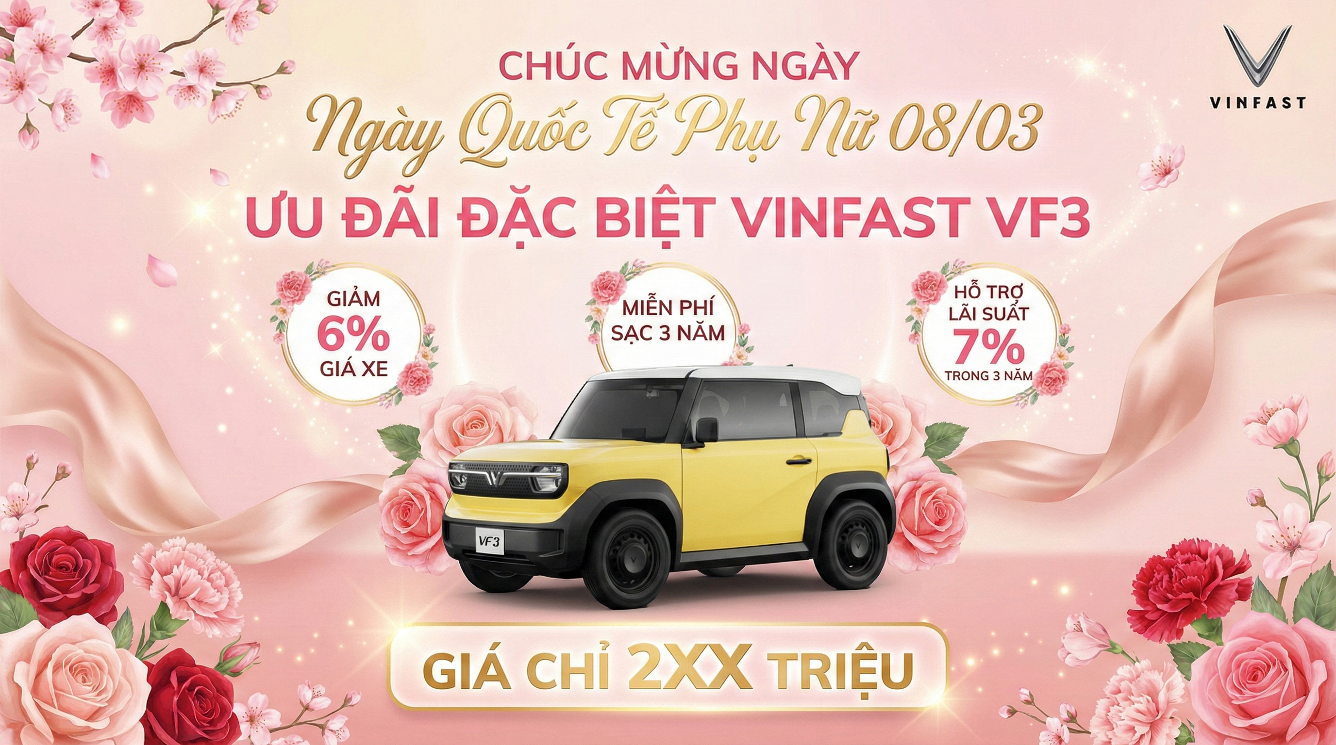 - VinFast VF3: Giảm 6% giá bán xe + Tiền mặt hấp dẫn - Hỗ trợ giảm lãi suất 7% trong 3 năm, Tặng 2 năm bảo hiểm thân vỏ & Gói phụ kiện chính hãng theo xe - Liên hệ trực tiếp để có giá tốt hơn nữa