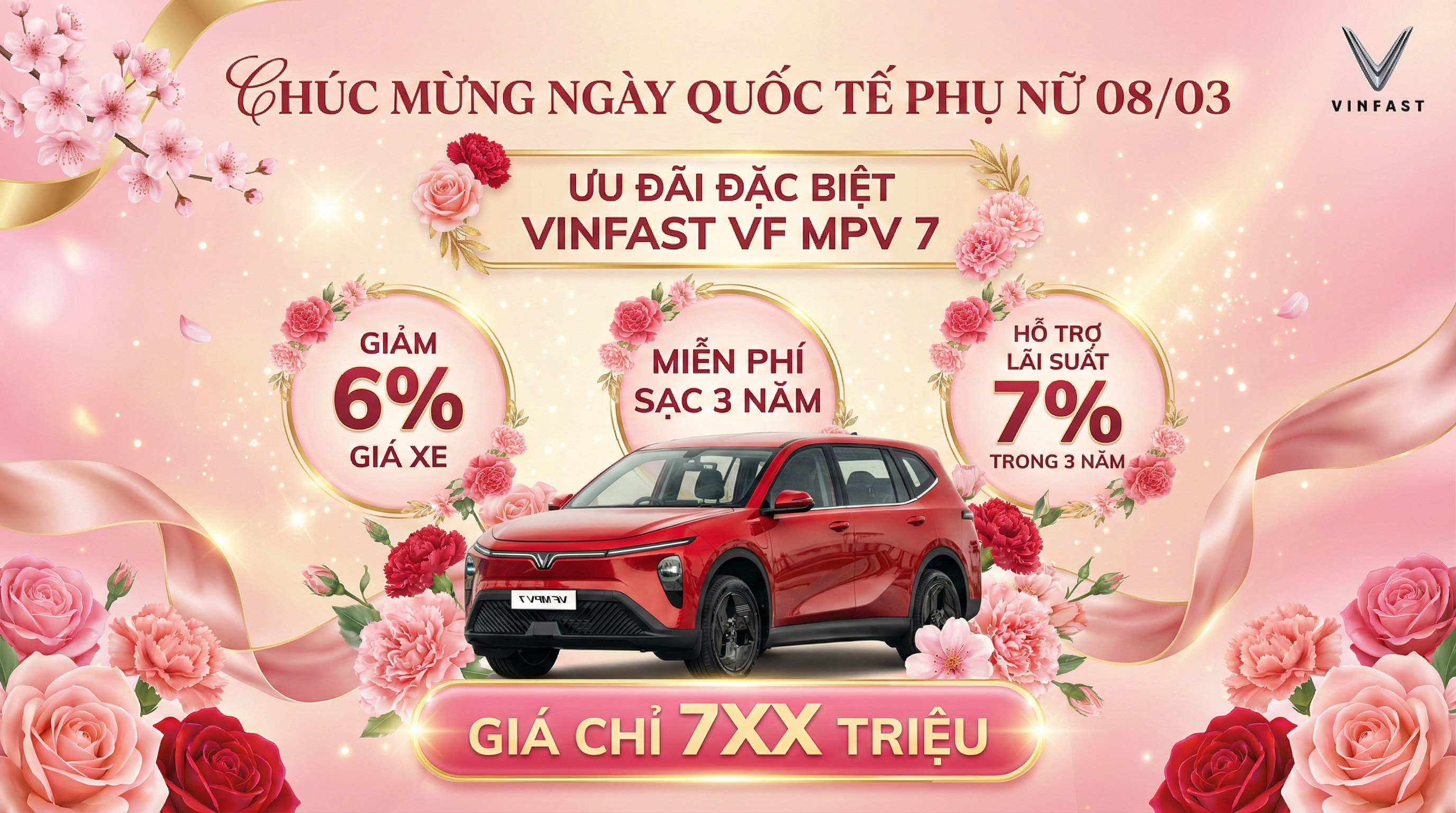 - VinFast VF7: Giảm 6% giá bán xe + Tiền mặt hấp dẫn - Hỗ trợ giảm lãi suất 7% trong 3 năm, Tặng 2 năm bảo hiểm thân vỏ & Gói phụ kiện chính hãng theo xe - Liên hệ trực tiếp để có giá tốt hơn nữa